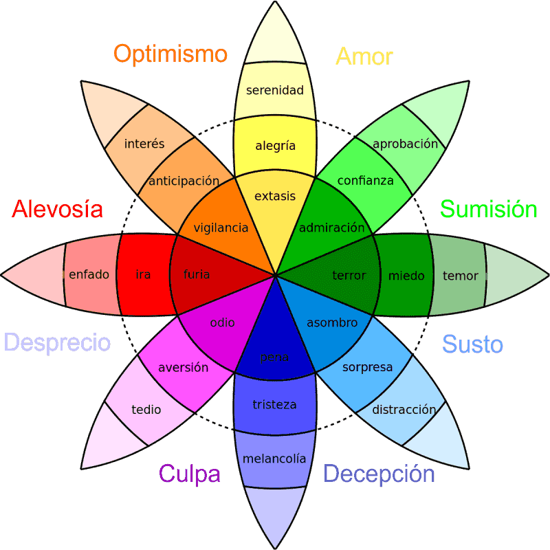 A esta habilidad le conocemos como identificación de emociones, por lo que debemos aprender a reconocerlas y llamarlas por su nombre. Se conocen seis emociones básicas: enojo, tristeza, alegría, asco, miedo y suspenso, la mayoría de los animales son capaces de experimentar las emociones básicas, sin embargo los humanos podemos generar otras emociones que se conocen como secundarias, estas emociones se describen por niveles hacia el centro de la Rueda de Emociones de Plutchik.