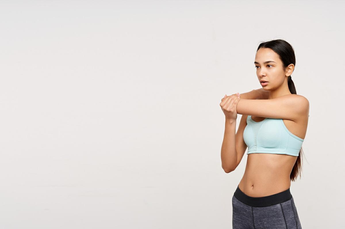 Otro ejercicio sencillo para tus hombros sería: mueve tu brazo izquierdo por la parte trasera de la nuca. Luego coloca tu mano derecha encima del codo y ejerce poca presión. Repite el ejercicio, pero con el brazo contrario.