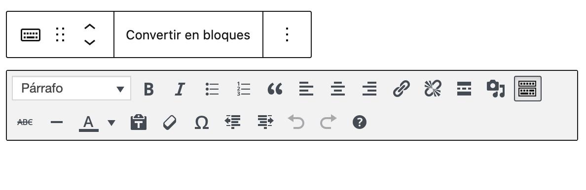 Muchos de vosotros tenéis muchas páginas y entradas que ya están creadas y publicadas con el editor clásico. Previamente, editándolas con el editor de bloques conllevaba muchos mensajes preguntando convertir el contenido a bloques. Ahora hay un único botón “Convertir en bloques” que se encargará de ello en un momento.¿Puedo combinar el bloque clásico con otros bloques?