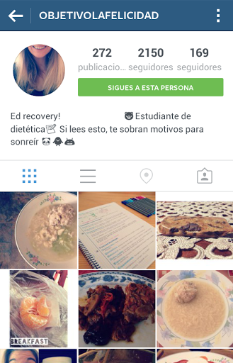 Y por último no por ello quiere decir que más importante pero sí que un tanto especial es @objetivolafelicidad . Esta estudiante de dietética desprende simpatía en cada foto que sube y transmite muy buena energía.
