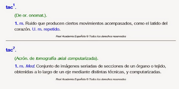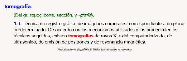 Otro caso totalmente distinto es el del T.A.C. y es por el que escribo este post. El otro día... Alba, gran médica, mejor amiga y además de las dos cosas, muy perfeccionista... (nos parecemos en lo último ;)) me comentó que lo correcto era decir la TAC, ya que TAC era una abreviatura de tomografía axial computarizada y como la palabra tomografía es femenina...