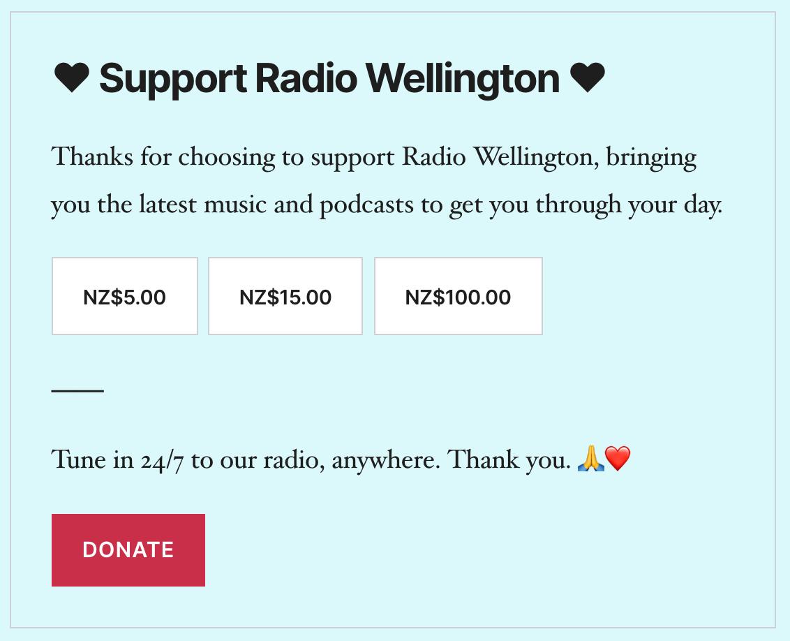 Ejemplos de Bloques de Donaciones para un músico y una estación de radio