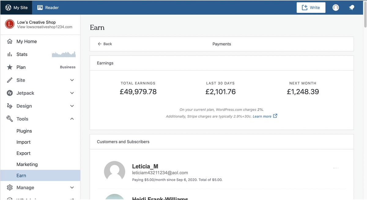 En Mi Sitio Web>Herramientas>Ingresos podrás ver tus donantes, tus ingresos y otras estadísticas.