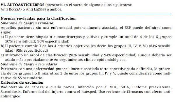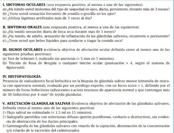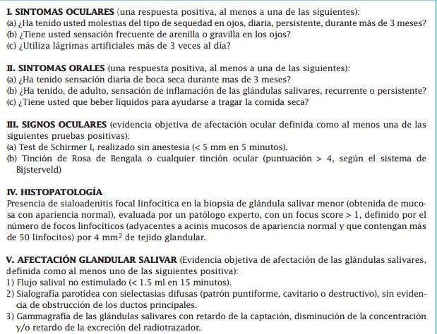 A continuación se detallan los Criterios internacionales revisados para la clasificación del síndrome de Sjögren: