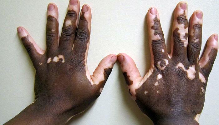 El vitiligo, científicamente conocido como leucodemia, es una afección médica de la piel que degenera la misma, creando parches blancos en distintas partes del cuerpo por carencia de melanocitos, ocasionando despigmentación. Es una enfermedad autoinmune; también puede afectar mucosas nasales, boca, ojos y hasta la lengua.