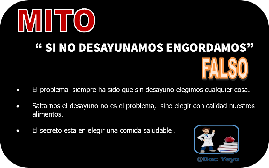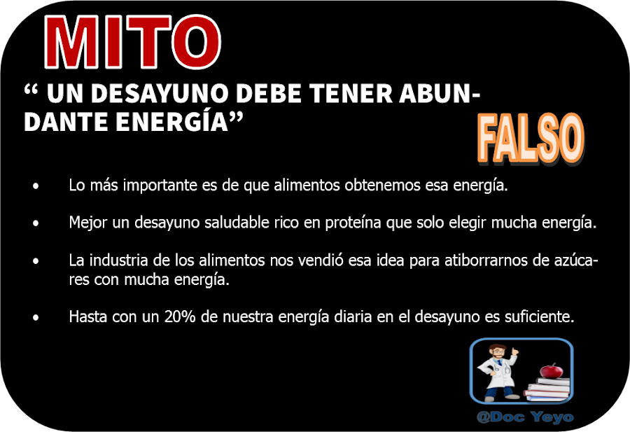 - Al final ha sido contraproducente manejar este mito, dándole mayor importancia al desayuno y infravalorando los demás o también provocado que las personas consuman cualquier cosa en la mañana con la excusa de es mejor desayunar. Nos ha hecho victimas de publicidad con productos pésimos para desayunar, cuando lo más importante es que tipo de energía metes a tu cuerpo.