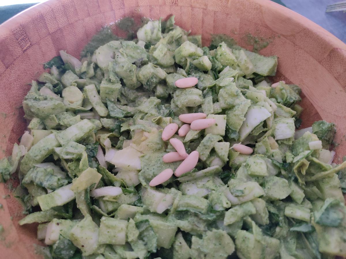 Para una comida completa, puedes agregar a la ensalada green goddess garbanzos, guisantes u otra legumbre cocida. O un cereal tipo mijo, quinoa o arroz.