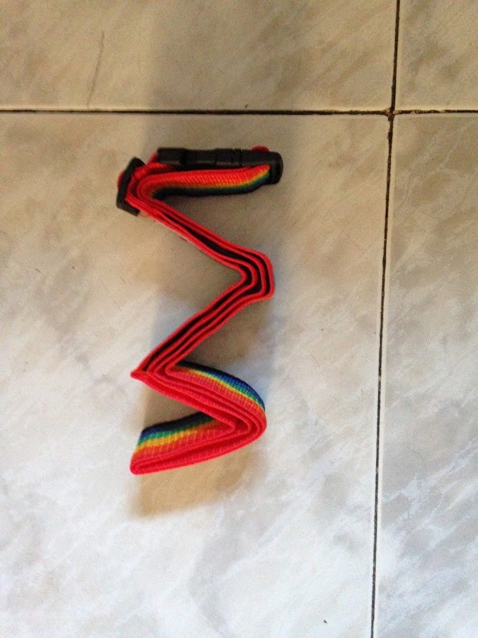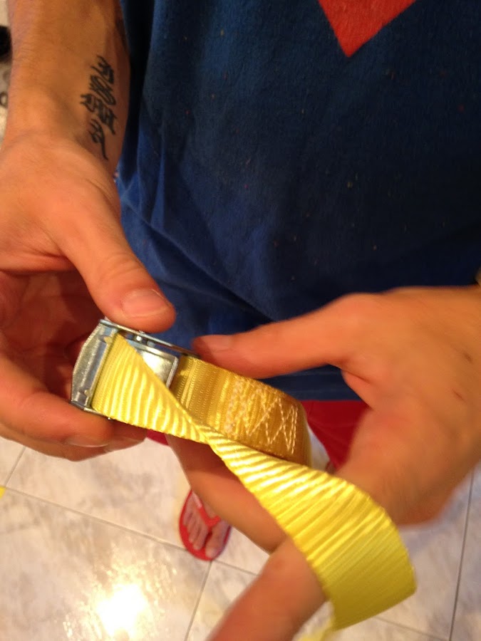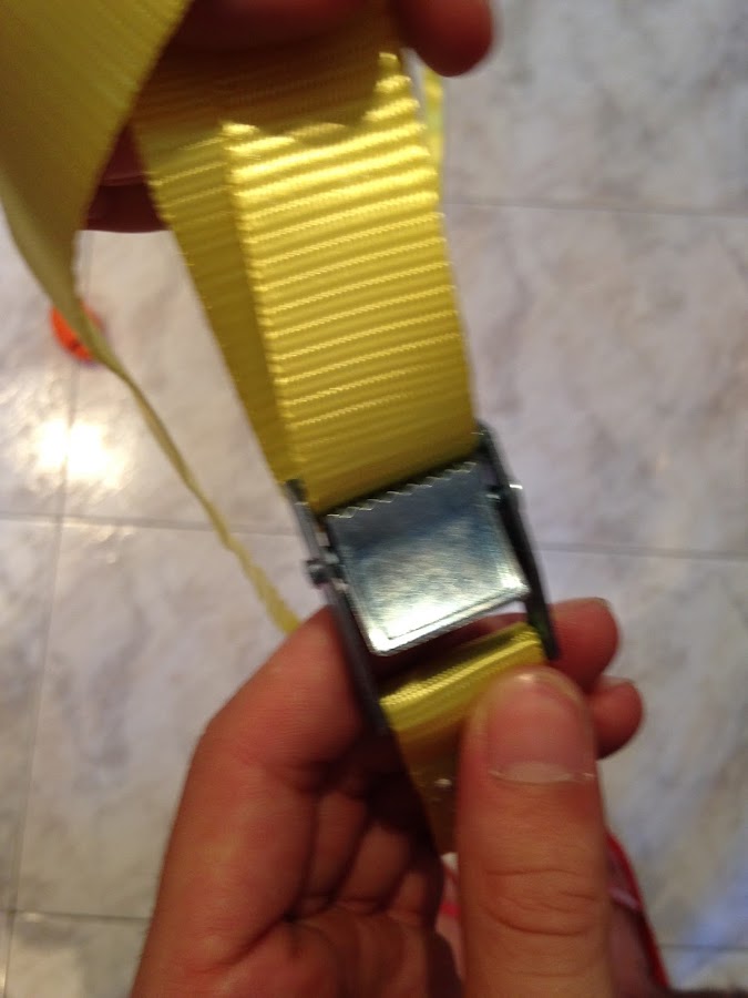 Con todo lo anterior montado solo nos falta utilizar la cuerda de seguridad para maletas, y esto, es tan simple como pasar la cuerda y cerrar el "click" para dejar unidos los dos trinquetes y NUESTRO TRX CASERO ESTARÁ LISTO!