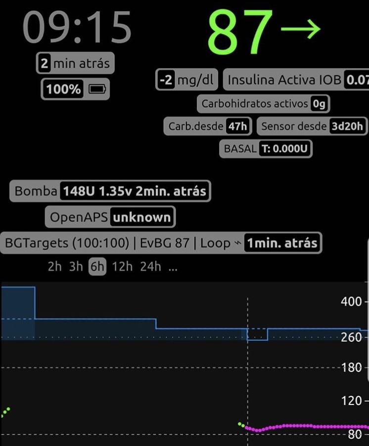 También dejar claro que llevar un PA DIY no te separa de tu diabetes. Simplemente te da un poco de tregua en momentos que tiene que trabajar la basal para mantenerte. Seguirás teniendo diabetes, seguirás tomando decisiones en las comidas, y seguirás teniendo tanto hipos e hipers en ocasiones, ya pueda ser por un catéter obstruido, por un mal contaje de raciones, por enfermedad, o porque la insulina esté mal… Siguen estando esos factores ahí.