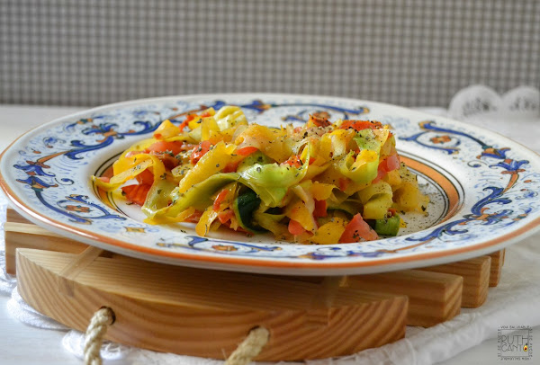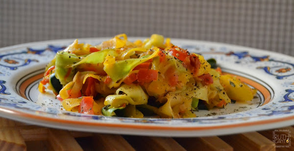 Listo! ya tenemos nuestros espaguetis vegetales de calabaza y calabacín, espolvorear por encima la pimienta y la albahaca.