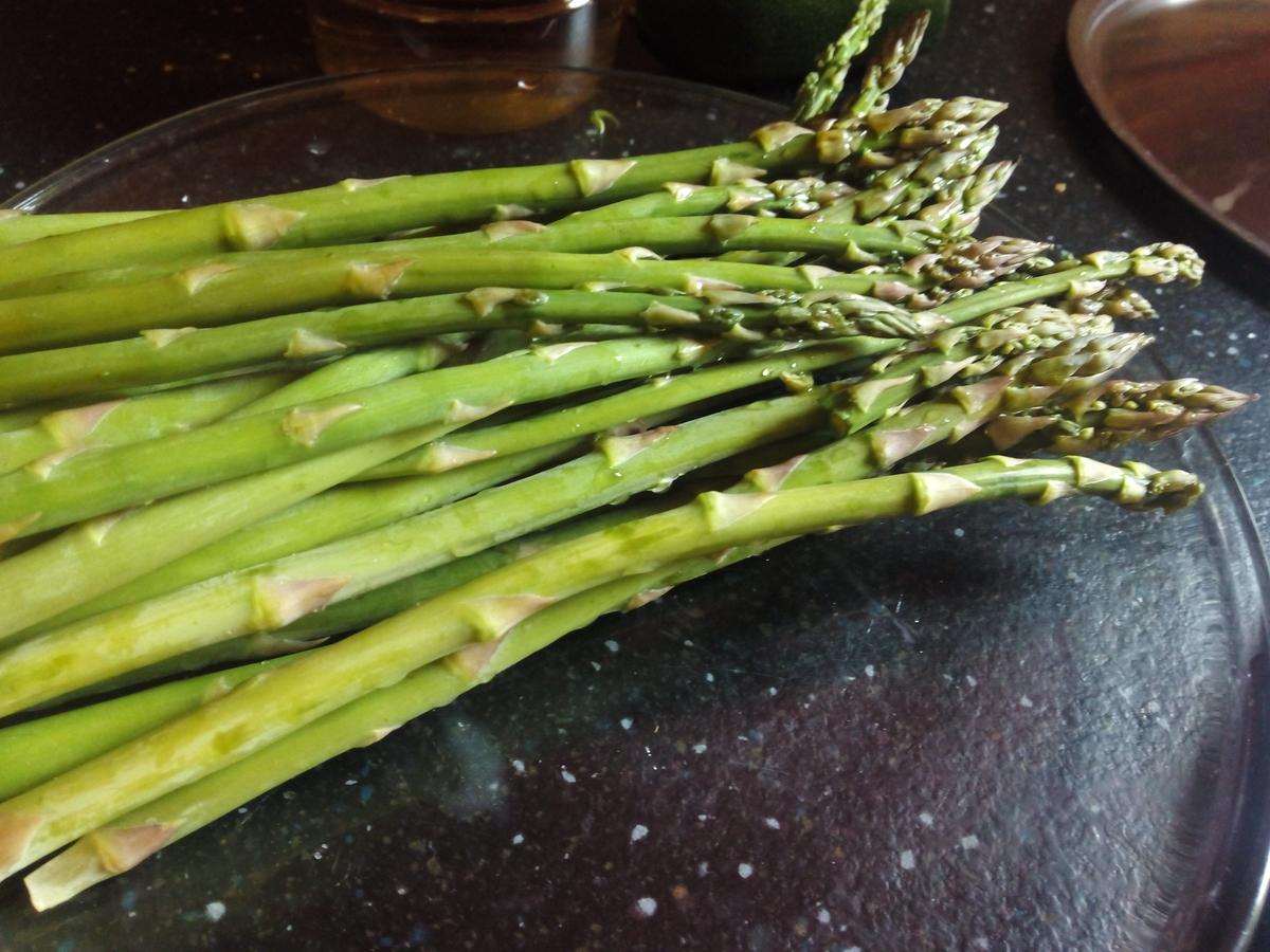 Luego cocinamos los espárragos verdes a la plancha con un poco de sal y aceite durante 1 minuto para que se doren un poco.