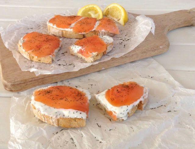 8. Tostas de salmón ahumado con queso crema light y eneldo (Ver receta)
