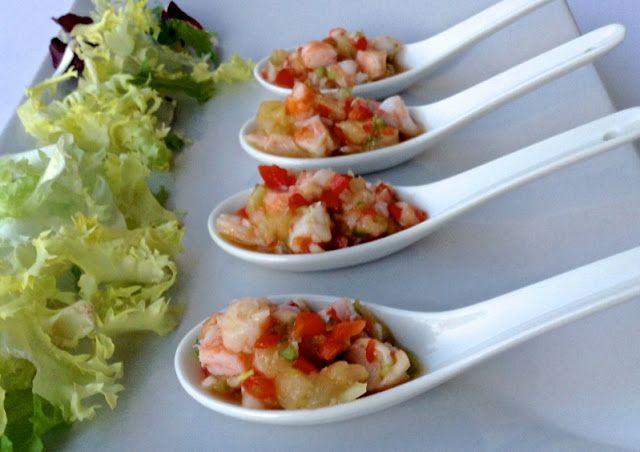 9. Cucharitas de langostinos y piña con vinagreta (Ver receta)