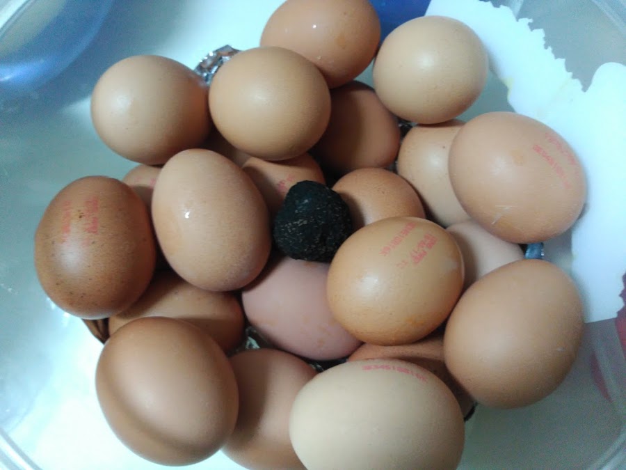 Para trufar los huevos, como ya comenté, tenemos que introducir todos los huevos que queramos en un taper lo más grande posible, haciendo un huevo para poner la trufa en medio y cerrarlo herméticamente. Lo conservamos en el frigo y tras unos días, debido a la cáscara porosa del huevo.. tachán! tenemos huevos trufados!