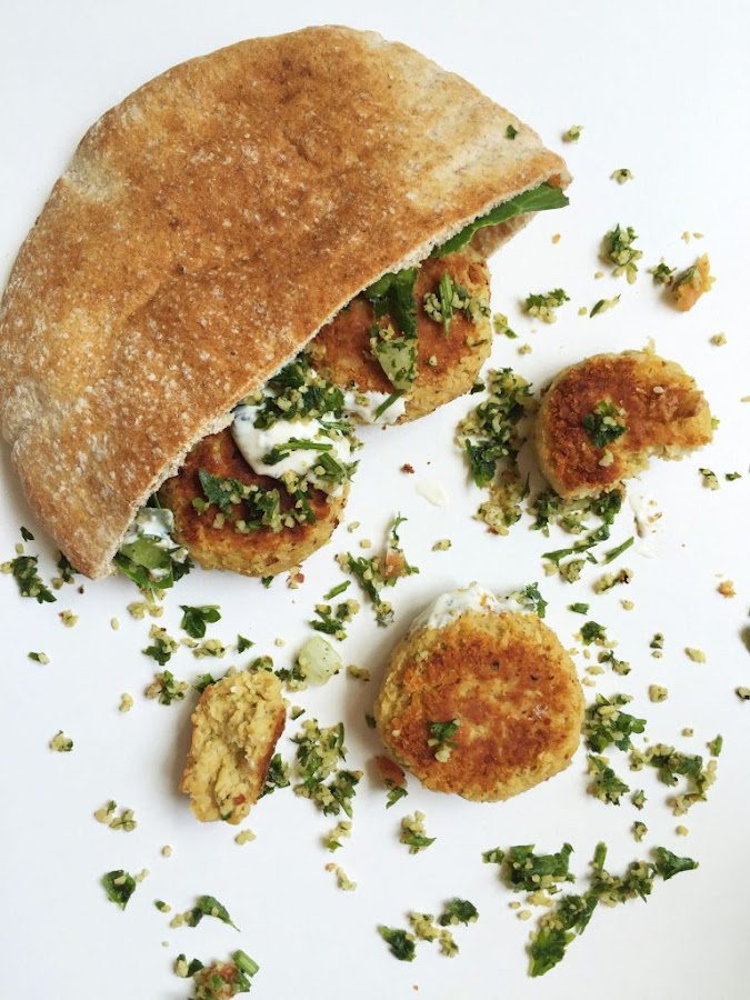 Después de que la masa de falafel se enfríe, comience a formarlos en pequeñas empanadas usando su mano (aproximadamente 1,5-2 cucharadas o menos)