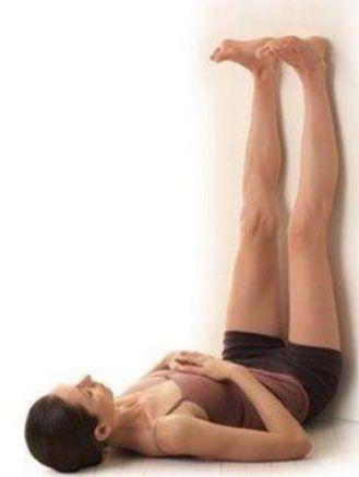 Como ves en la imagen, se hace como en la Urdhva Prasarita Padasana, solo que apoyándote en la pared. Esta asana te permite recuperarte del esfuerzo, superar calambres y suavizar la tensión en los músculos.