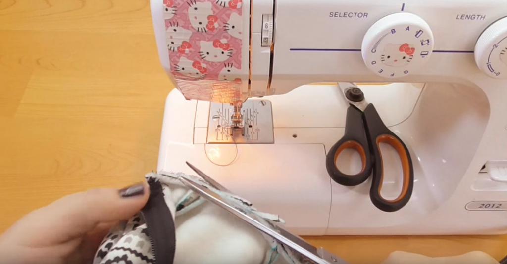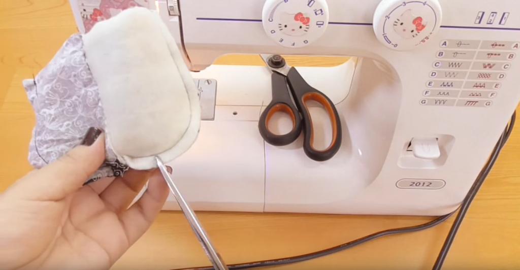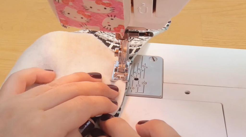 Ahora vamos a voltear la pieza al derecho y realizamos un pespunte lineal o sencillo a 1 cm aproximadamente del rache.
