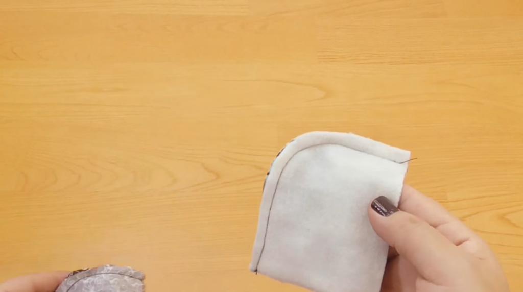 Vamos a unir 2 y 2 piezas con los derechos enfrentados y realizamos costura por la zona curva.