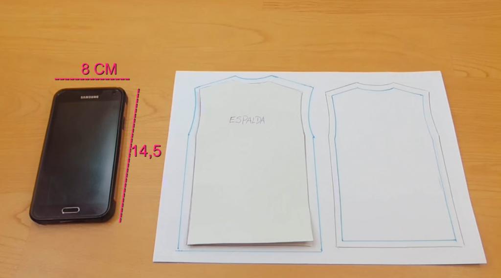 Lo siguiente que vamos a hacer es a medir las dimensiones de nuevo teléfono, ancho y largo, en este caso 8 x 14,5 y le añadimos 1 cm de margen de costura por todo el borde en caso que mida menos le quitas 1 cm.