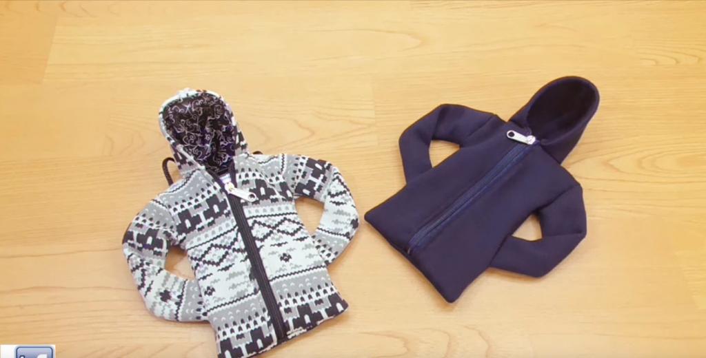 Colocamos la capucha a la pieza principal, fijamos con alfileres y cosemos un pespunte para unir.