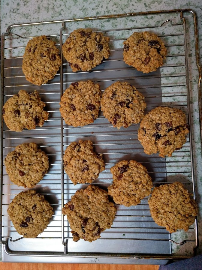 Al terminar la cocción pon las galletas en una rejilla para que se enfríen. Aunque veas que al salir del horno están blandas, no de apures, una vez frías se endurecen pero quedarán jugosas por dentro.