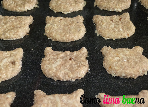 La consistencia es bastante húmeda, debido a las frutas. Si preferimos no usar cortantes podemos hacer pequeñas bolitas con las manos y apretarlas un poco luego en la placa. Idealmente usamos placa de silicona o placa común con papel manteca. Será mucho más fácil quitarlas y no necesitaremos ninguna materia grasa extra.