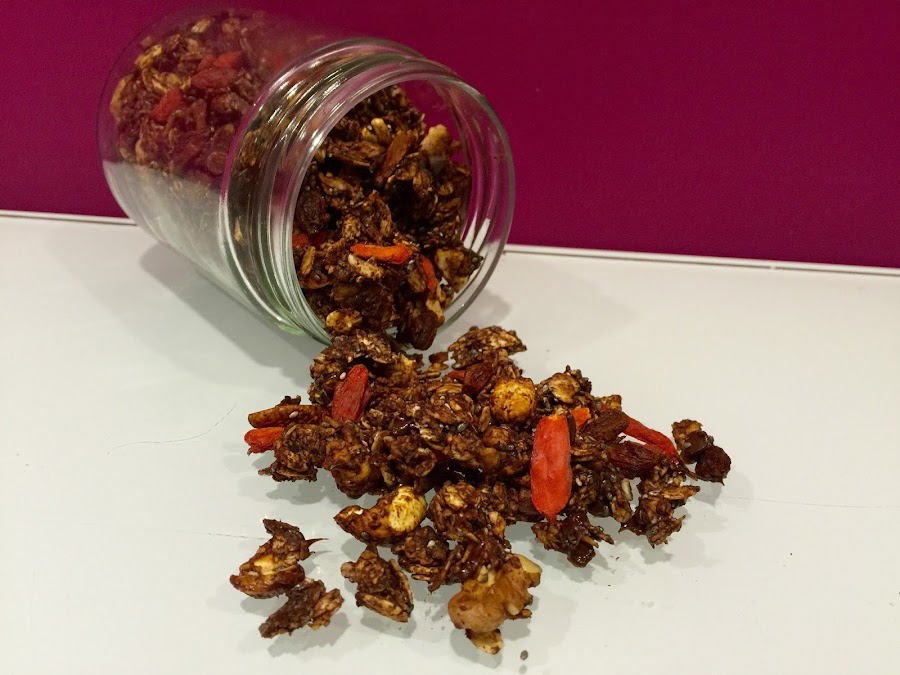 7. Colocamos la granola en un tarro hermético y ya la tenemos lista para desayunos, meriendas y tentempiés.