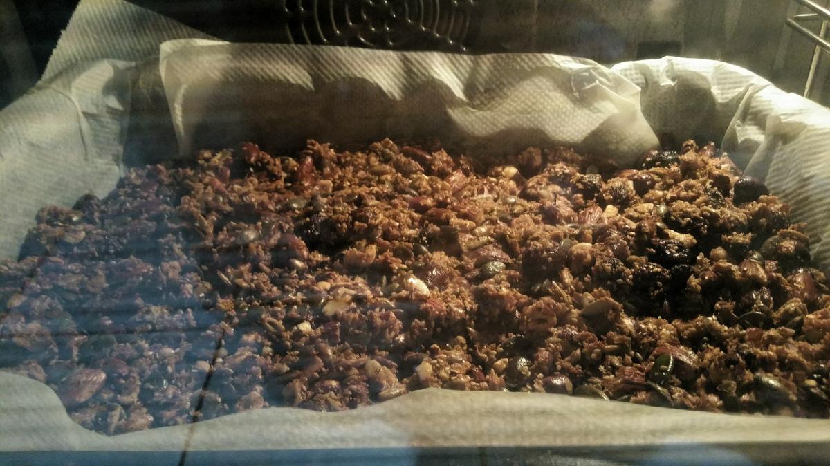 Si te gusta que tu granola sea más fino remueve lo nada más sacarlo del horno y de nuevo pasados 10-15 minutos.yo lo dejo en La Cocina destacó toda la noche o varias horas y luego lo guardo en un táper grande!