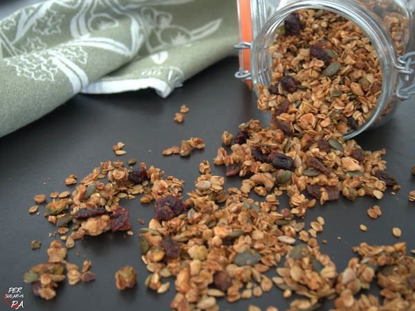 Esta de hoy viene con almendras, pistachos y nueces como fruta seca y pasas y arándanos como fruta deshidratada, crujiente y con aroma de canela.