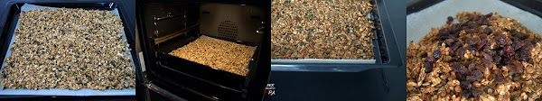 Deshacer un poco los trozos más grandes, añadir los frutos deshidratados (pasas y arándanos) y mezclar.