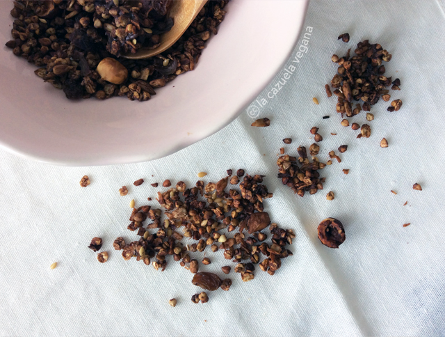 Granola de chocolate con trigo sarraceno, avena, avellanas y coco