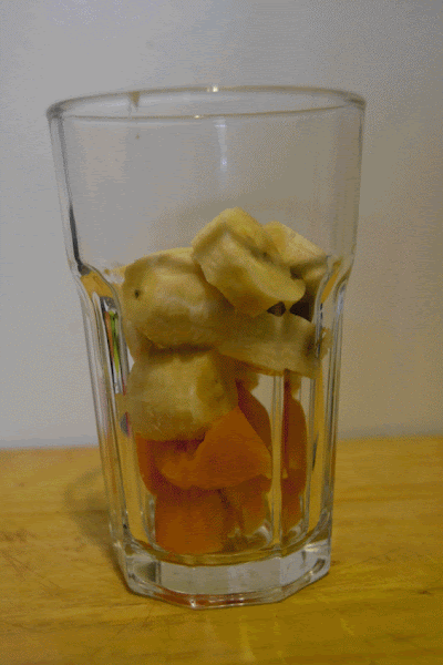 Pelar la fruta, triturarla y colocar en los moldes para helado, esperar a que se congelen y disfrutar al máximo.