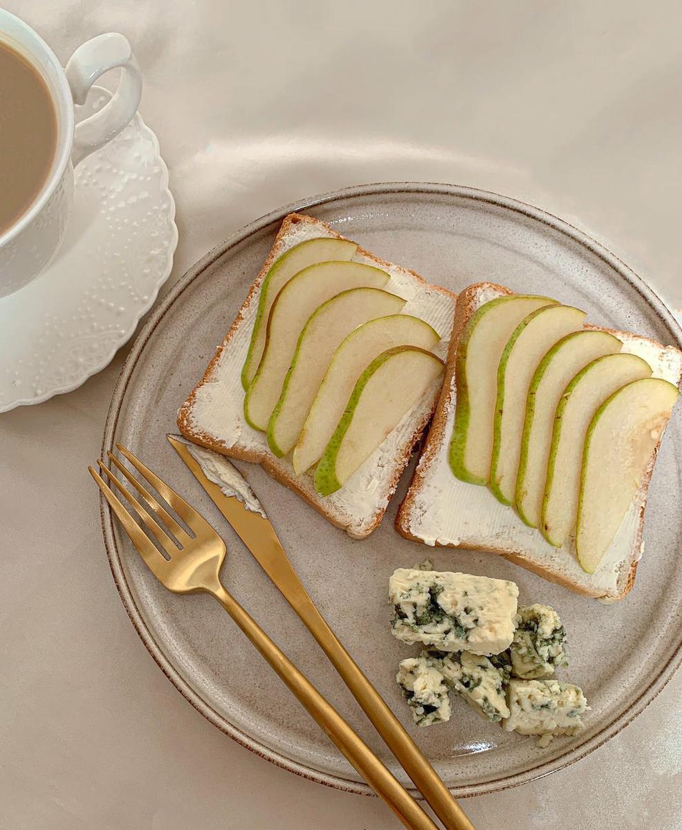 Tostada de queso cottage y pera.
