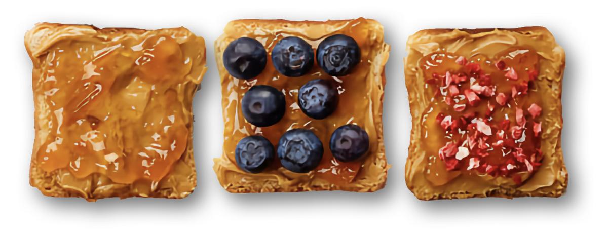 La fruta encaja a la perfección en cualquier modelo de desayuno saludable, de manera que intenta que aparezca siempre, preferiblemente en su forma entera. Descarta zumos, tanto envasados como naturales, su contenido en azúcares libres es elevado y sin ningún aporte de fibra.Tostadas, un clásico…