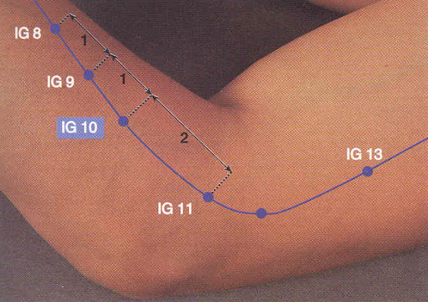 También puedes aprovechar este punto para tratar dolor en codos y brazos y es muy útil en la recuperación de la movilidad luego de un ACV (accidente cardiovascular) y calambres en antebrazo y mano.