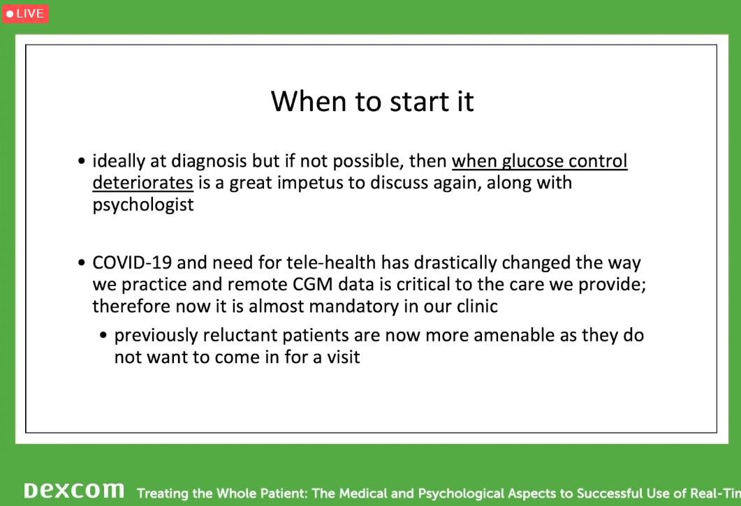 Lo primero de todo espero que hayáis tenido una maginifca salida y entrada de año. Espero que este 2021 solo nos traiga cosas buenas que celebrar.Pues bien, hoy os traigo este simposio de Dexcom que me pareció muy interesante, ya que a pesar de estar centrado en Dexcom como MCG, habló es de los aspectos médicos y psicológicos que el médico debe tener en cuenta a la hora de prescribir o recomendar un MCG a pacientes tipo 1 con el fin de que el uso de estos sean un éxito.