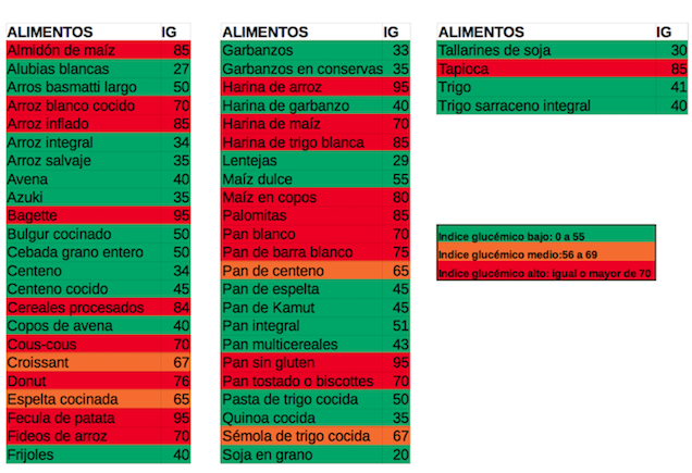 Si quieres saber el índice glucémico de diferentes alimentos que puedes encontrar en una Alimentación Saludable, te dejo diferentes tablas clasificadas por diferentes grupos de alimentos.