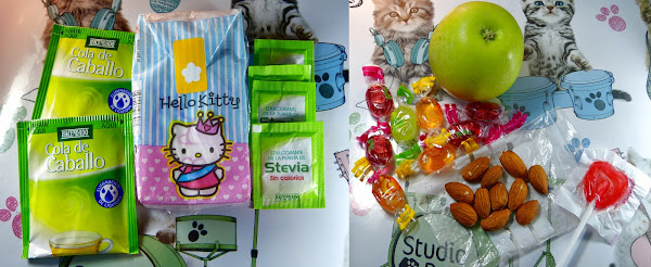 Más cositas: clinex, edulcorante, alguna infusión (no siempre), caramelos y algo de comer, jajaja.