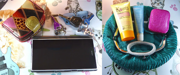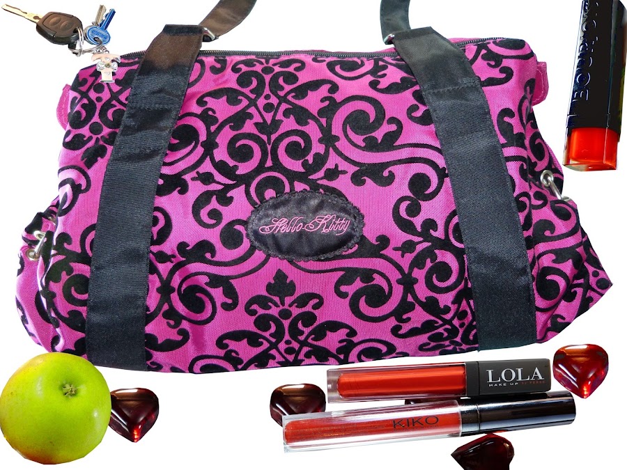 Lo más primordial son las llaves de casa y coche, cartera y móvil, sin eso no salgo ni a tirar la basura, jajaja, después en un neceser llevo cositas como crema de manos, bálsamo labial, pastillero, gomas del pelo y labial que veréis más abajo en otras fotos.