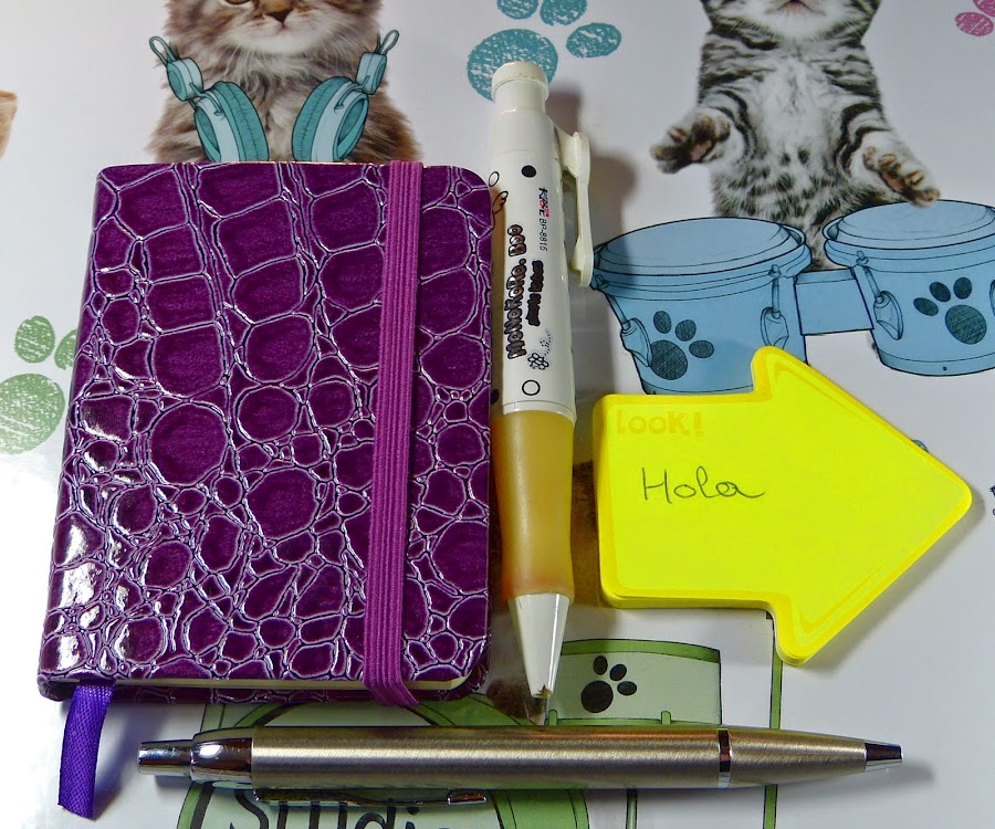 Por último: unos bolígrafos y algo donde escribir.Así queda: