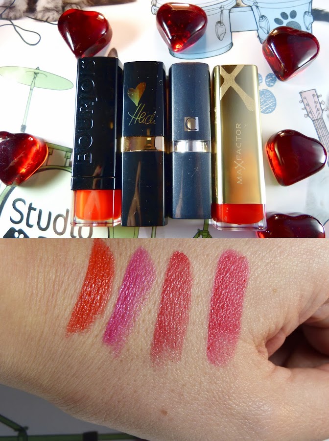 Aprovechando que se acerca San Valentín, os voy a mostrar unos labiales en tono rojo (y uno rosa, que como es nuevo aprovecho a enseñároslo) ya que están muy de moda ahora y para ese día son una buena elección: