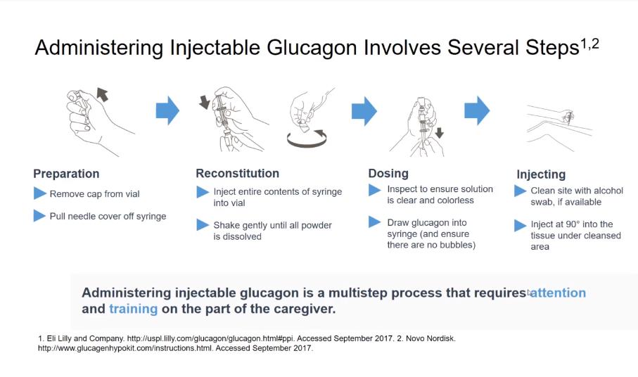 Actualmente, el tratamiento para la hipo severa es el glucagón, pero es cierto que la multitud de componentes que lo forman y la necesidad de reconstituirlo antes de aplicarlo al paciente, hace que es situaciones de emergencia se vuelva un proceso tedioso e incómodo. Esto requiere por supuesto, un entrenamiento previo del paciente, pero también de la familia e incluso amigos.