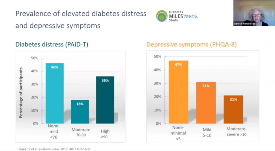 En estos estudios en los que se estudió a una población entre 13 y 17 años se analizó como el estrés o angustia, así como la depresión podían afectar al manejo y resultados de salud en diabetes, observándose que: