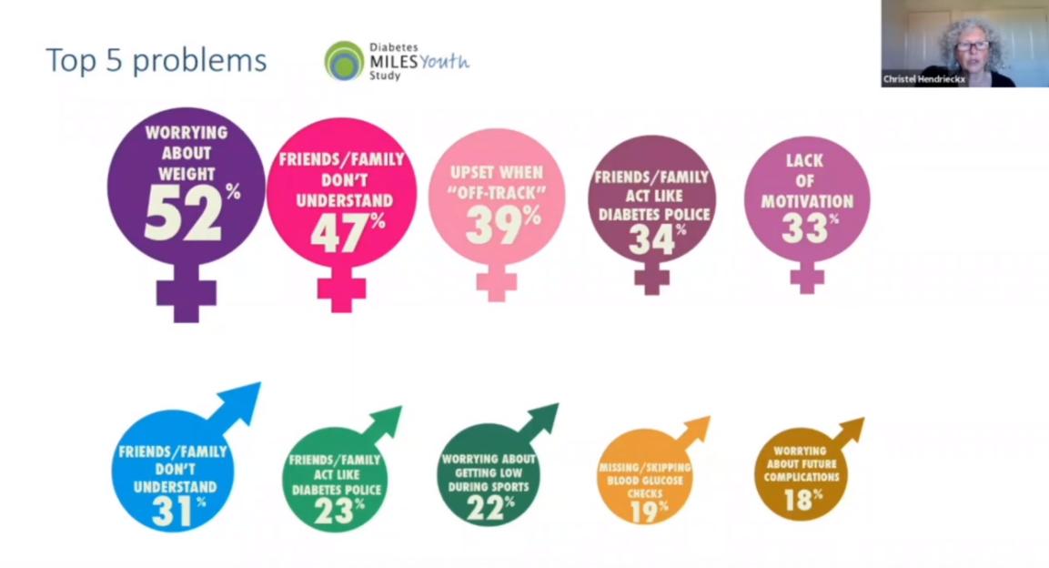 Pero no solo los adolescentes, los padres por supuesto también sufren y reportan que un 38% de los padres se sienten en este sentido como policías de la diabetes y sienten que no llegan a conectar con sus hijos.