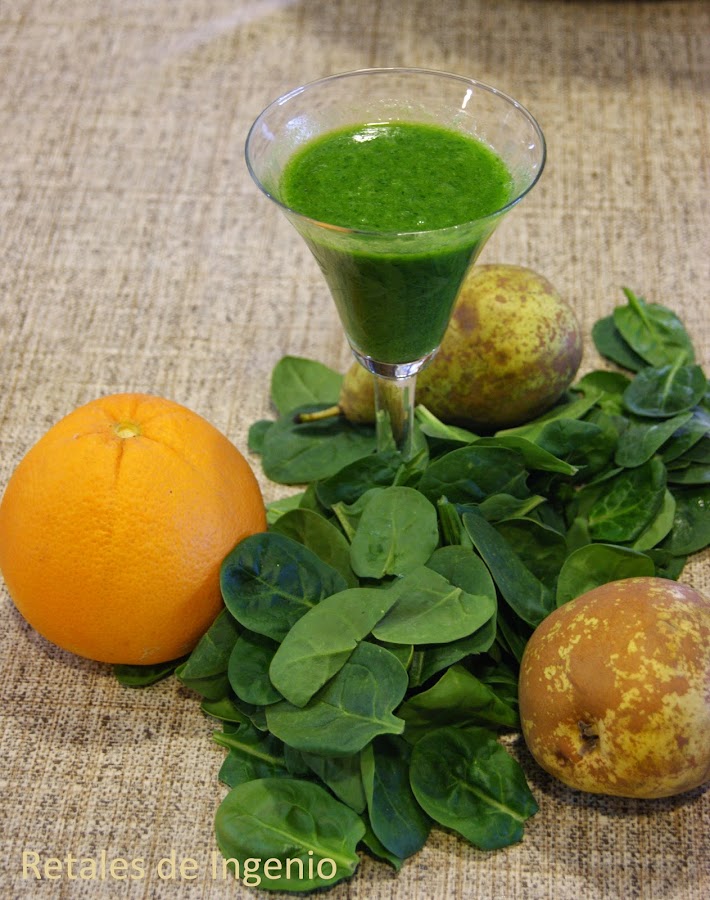 Hoy os traigo un rico jugo de espinacas al que le podéis añadir vuestras frutas preferidas y que sin duda os va a encantar y hasta incluso sorprender a muchos. En esta ocasión le añadí un par de peras y el jugo de una naranja pero queda genial con cualquier otra fruta. Aunque pueda parecer una combinación un tanto extraña y poco apetecible os aseguro que está buenísimo y que hasta incluso puede que les encante a los que no les gusten, para nada, las típicas espinacas hervidas. No tiene nada que ver y por eso lo encuentro tan interesante. Esta es una manera muy sana y fácil de incluir vegetales y frutas a vuestra dieta y se la dedico a mi sobrino Javi. Es el hijo pequeño de mi hermana mayor, aunque lo de pequeño............ pues mide casi 2 metros, le gusta cuidarse, es todo un cocinillas y comparte conmigo su pasión por una alimentación sana y saludable.