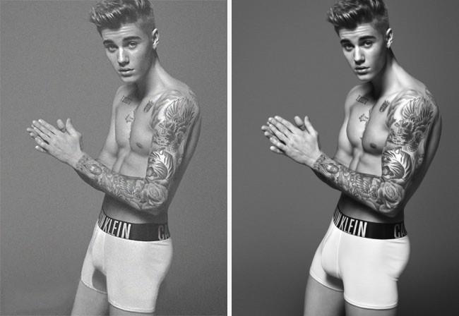 los publicistas de Calvin Klein a una foto de Bieber donde se ve mas corpulento.