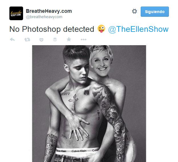 Otra foto que esta generando controversia es una de Justin posando con Ellen Degeneres.El blog se burla y dice No photoshop detect