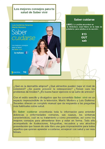 En esta entrega la biblioteca te recomienda el libro "Saber cuidarse", los mejores consejos para tu salud de Saber vivir.