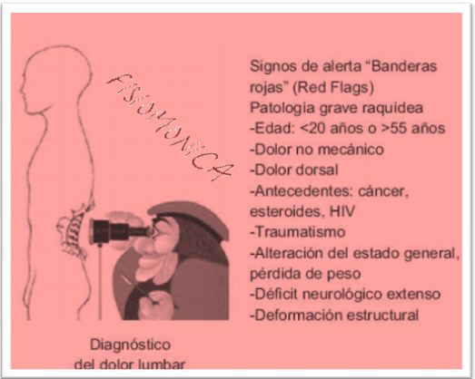 1. Siempre te han de descartar lesiones graves (red flags) en tu espalda como por ejemplo: tumores, artritis reumatoidea, grandes hernias discales, etc (1% del total). El resto de las lesiones, tienen su tiempo biológico de curación que como mucho son 6 meses... Te dejo una imagen de las red flag > Dibujo Red Flag
