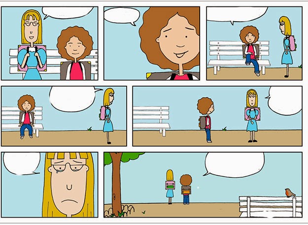 Si de plano no sabes ni por dónde empezar la historia, trata de llenar los espacios en blanco, con un dialogo congruente con lo que vez en este comic:
